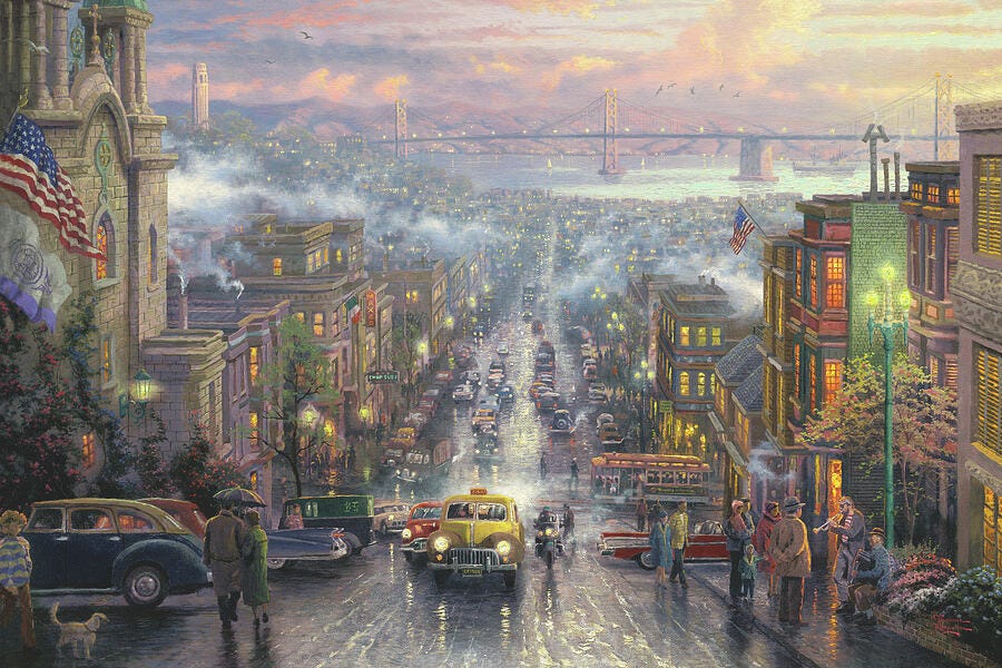 The city itself, Fox News be damned, is breathtaking as ever. Its topography is difficult to conceive for a southerner like myself: rolling mountains, sparkling ocean views, gargantuan hills, the fog (which they call Karl, I learn), and consistently unimpeachable weather. It looks and feels like paradise, and there’s no question why the richest people who have ever lived established their fiefdoms in it.