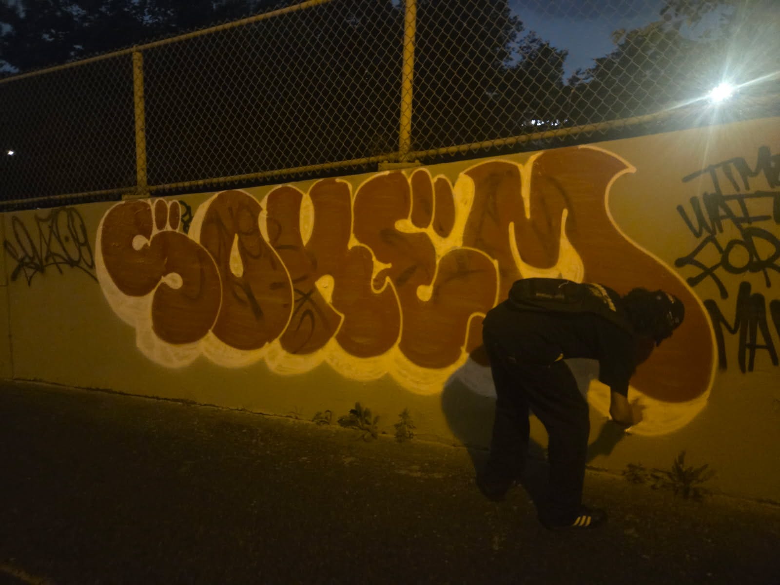 Last summer, I took a nine hour Megabus bus from Montreal to New York City, where my friend Allee had offered me a couch to sleep on. I was subletting a cheap room in Montreal, where I was enjoying a lazy, unemployed summer. In New York, I did much of the same, spending days aimlessly wandering and nights drinking beer in nearby Maria Hernandez Park. On Saturday, I went to a block party hosted by Brigade USA with my friend Lei. An hour or so into the outdoor festivities, I noticed someone painting a throwie—a bubble-lettered spelling of one’s graffiti tag—on a garage door across the street, a little bit away from the crowd. I pointed it out to Lei, and asked if he recognized the tag. He said he was unfamiliar, but added that most graffiti writers wouldn’t hit up like that on a busy street in broad daylight.