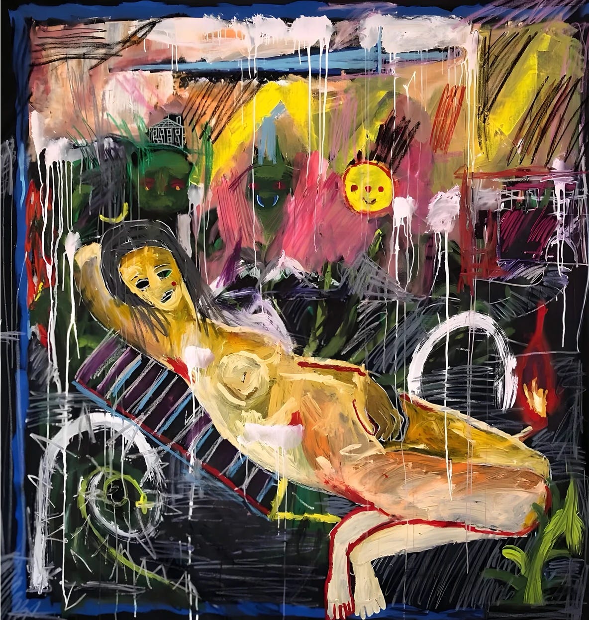 Money certainly helped, but the stability he had scraped for in New York prior to this debacle was destroyed. “Everything was stolen,” he says of his return. “Everything I owned was stolen. And in my apartment on Wall Street, everything got burned. And in another place, wicked people stole my art. They stole it and sold it. There was a hellish fire. It was burned to the ground. I came back to no paintings, no previous artwork.”