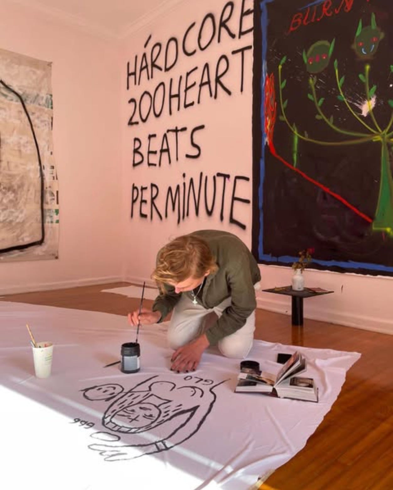 I didn’t think much of him over the next few months, until he began manically posting stories on Instagram in early 2024. These were mainly videos of him smoking cigarettes and drinking liquor while working on his art or walking around Manhattan, usually with Russian or Atlanta rap playing in the background. Then came a trip to Miami, followed by cryptic messages about a possible arrest, silence for a week, a video of him back in New York with an ankle monitor on, and finally, a post on his account made by someone else explaining that Artemis had been taken into ICE custody. The few updates over the next 10 months offered little explanation about the situation. He started posting again when was free and back in New York. That’s when I reached out for an interview.